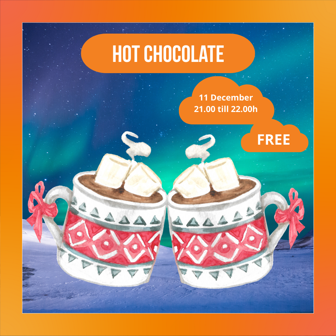 With the winterdays approaching, you can warm up at the pub with hot chocolate! Free hot chocolate is served on Tursday 11th of December from 21.00 till 22.00h, note OP = OP!